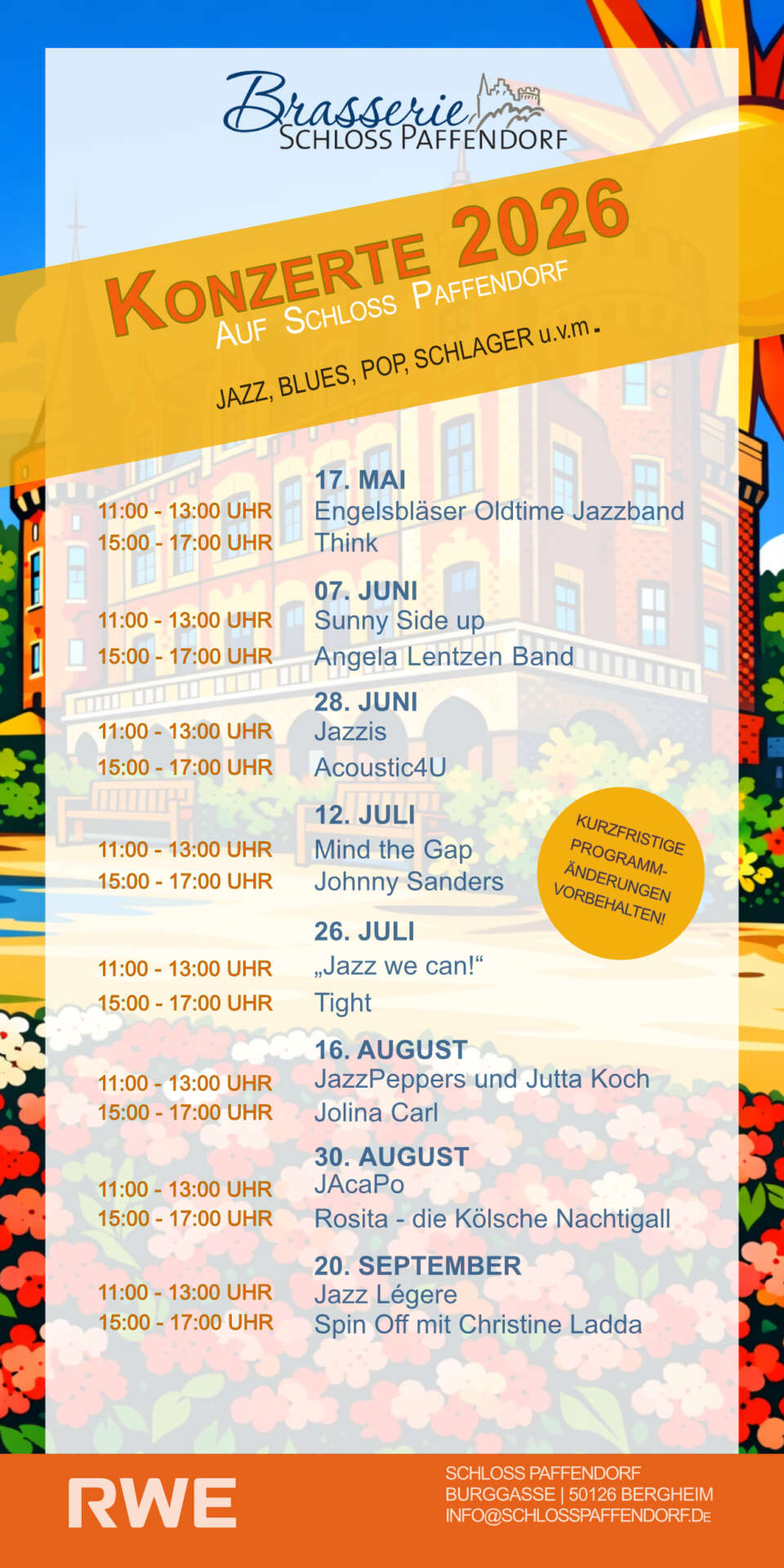Auch 2026 möchten wir wieder in Kooperation mit der RWE Power AG die legendären Sonntagskonzerte veranstalten! Swingen Sie an insgesamt 8 Sonntagen mit.